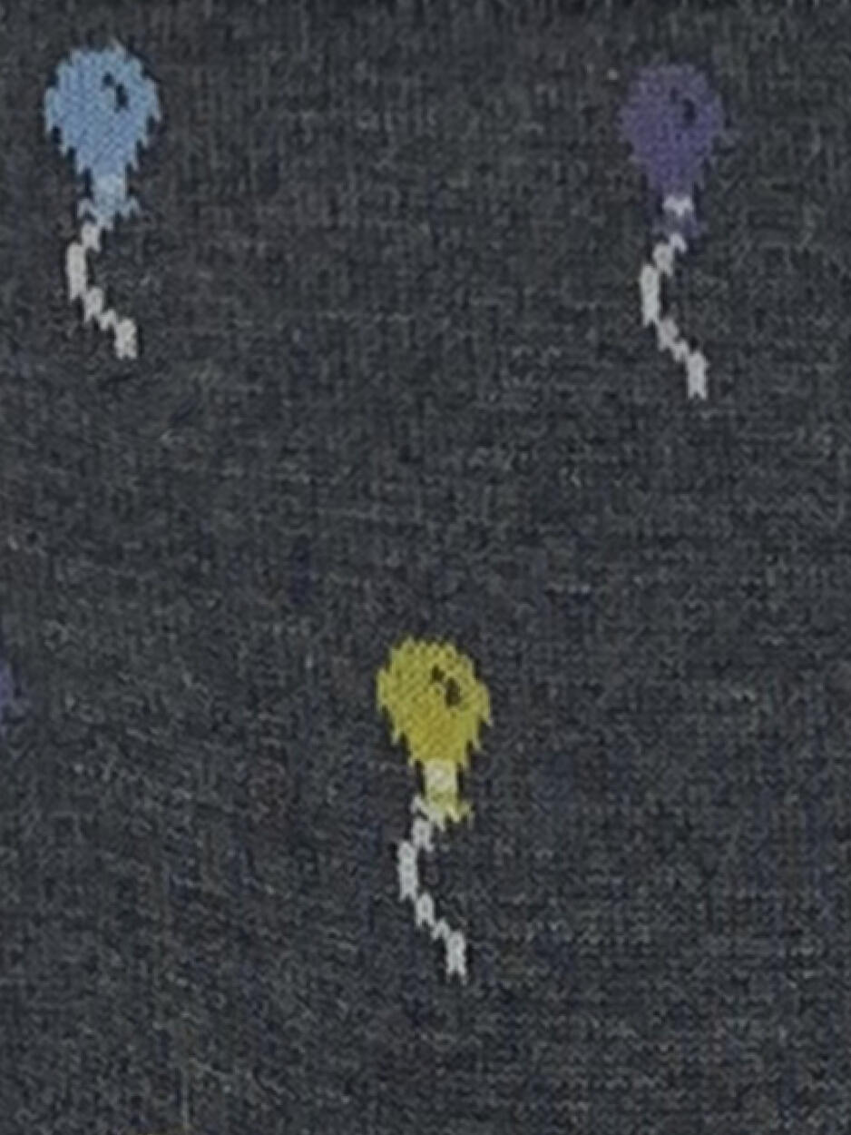 Calza corta da donna fantasia Palloncini, in puro cotone egiziano di alta qualità, leggermente elasticizzato per una perfetta vestibilità. Polsino a costine, punta e talloni rinforzati. Simpatica e divertente, per uno stile originale.