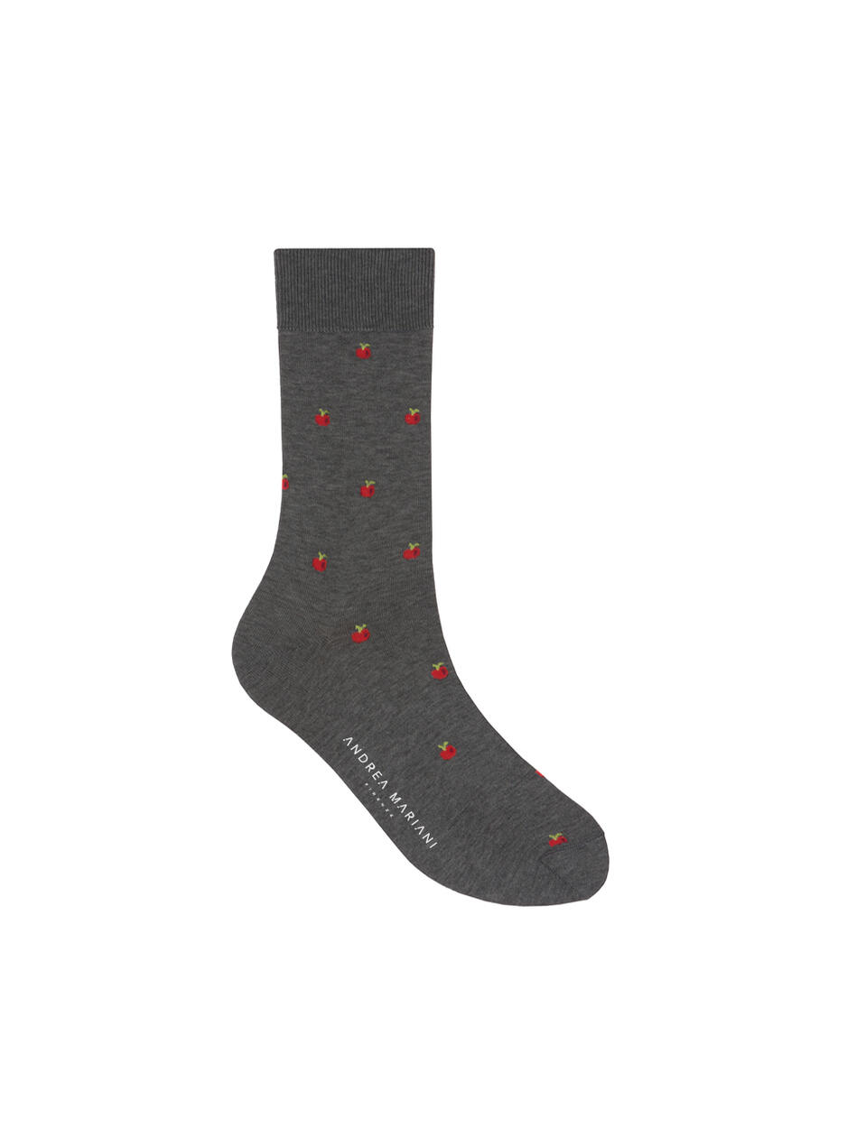 Calzino corto con fantasie APPLE GREY in puro cotone egiziano di alta qualità, leggermente elasticizzato per una perfetta vestibilità. Polsino a costine, punta e talloni rinforzati. La Fantasia con motivo a mela di ispirazione classica rende il calzino corto APPLE GREY divertente e originale.