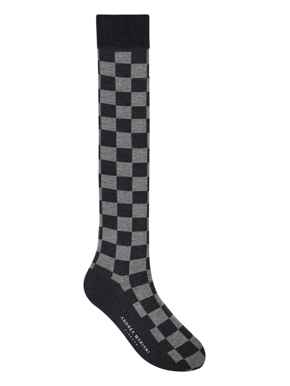 Calzino lungo a scacchi in puro cotone egiziano di alta qualità, leggermente elasticizzato per una perfetta vestibilità. Polsino a costine, punta e talloni rinforzati. Le grafiche astratte o geometriche le rendono perfette per uno stile urban street moderno e originale.