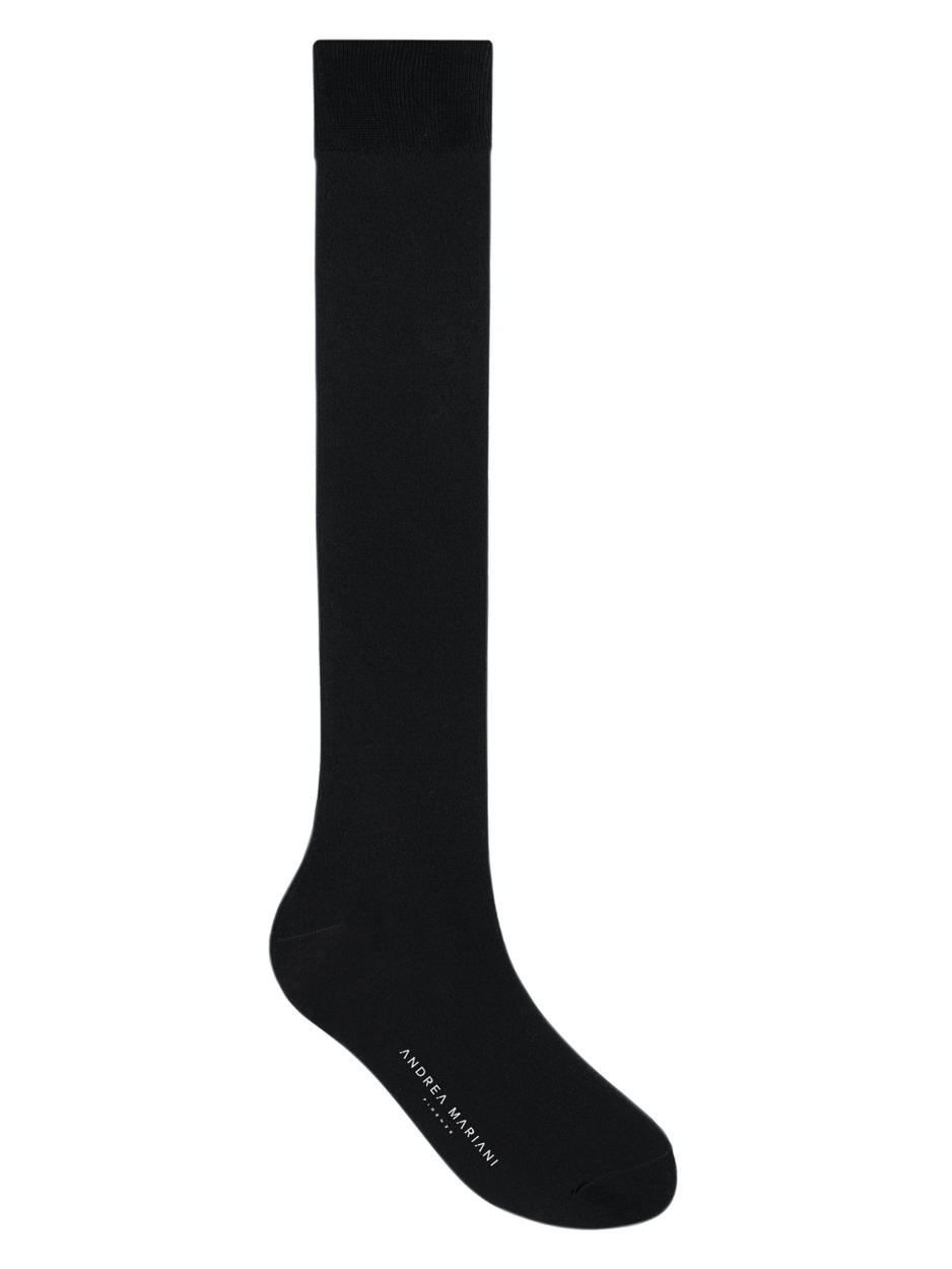 Calzino lungo tinta unita liscia di colore nero in puro cotone egiziano di alta qualità, leggermente elasticizzato per una perfetta vestibilità. Polsino a costine, punta e talloni rinforzati. Mood basic ed essenziale dai colori originali che lo rendono adatto ad ogni occasione.