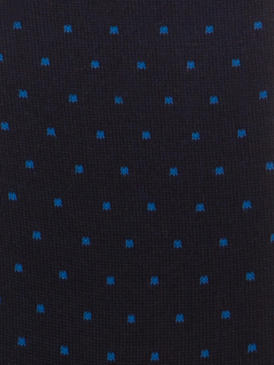 Calzino lungo a pois mini SMALL DOT BLUE in puro cotone egiziano di alta qualità, leggermente elasticizzato per una perfetta vestibilità. Polsino a costine, punta e talloni rinforzati. Caratterizzato da piccoli puntini per uno stile classico ed elegante.