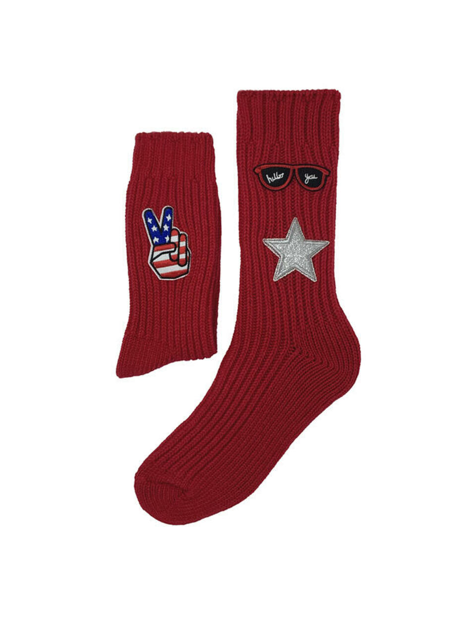 Calzino corto da donna in cashmere Patch Red, colore tinta unita. Le patch in varie fantasie rendono ogni paio unico, perfetto per uno stile originale.