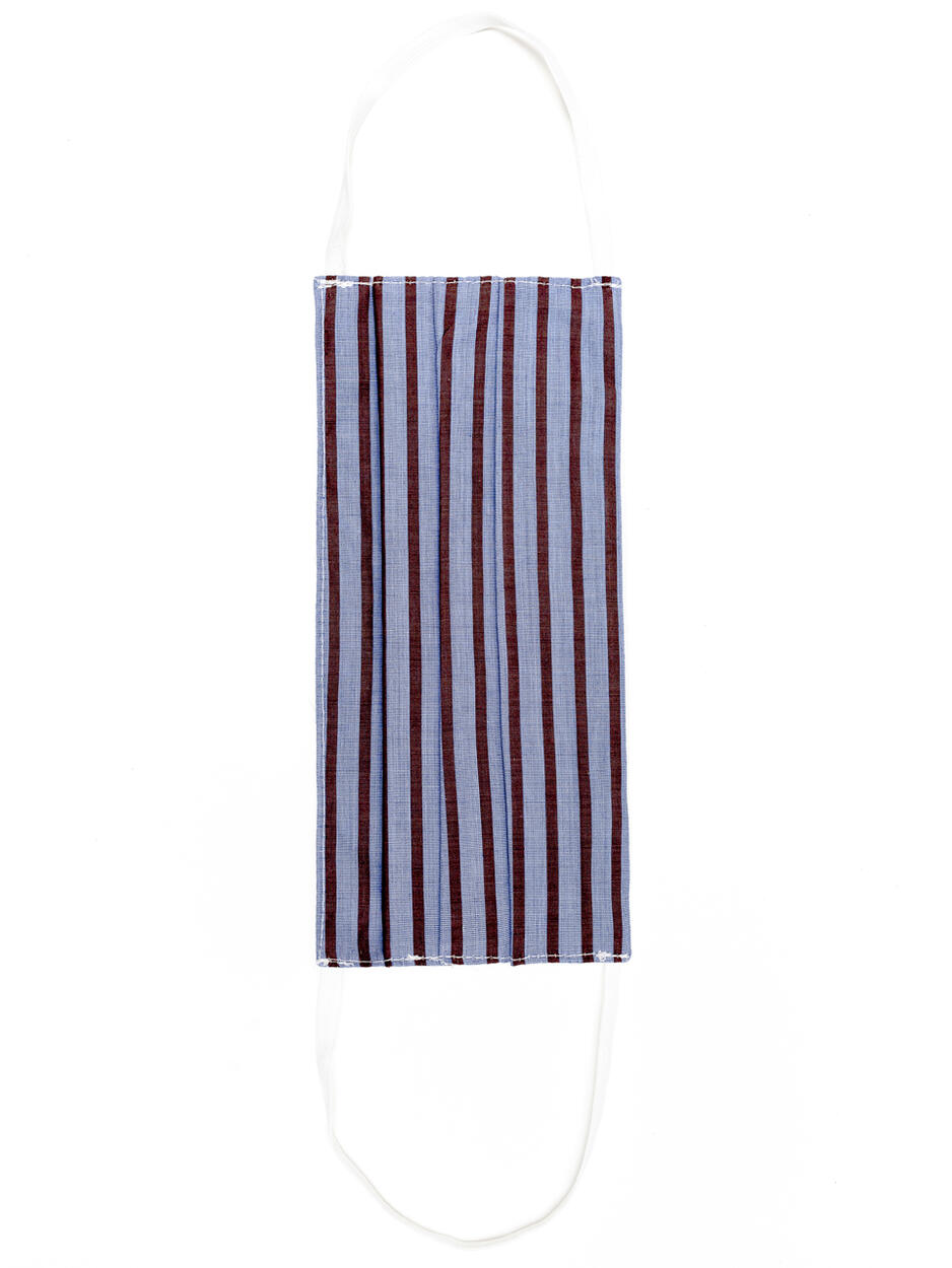Copri mascherina unisex in cotone. Sterilizzabile tramite stiro a vapore o bollitura, riutilizzabile. Modello a righe. Non è un presidio medico.
